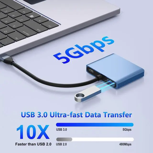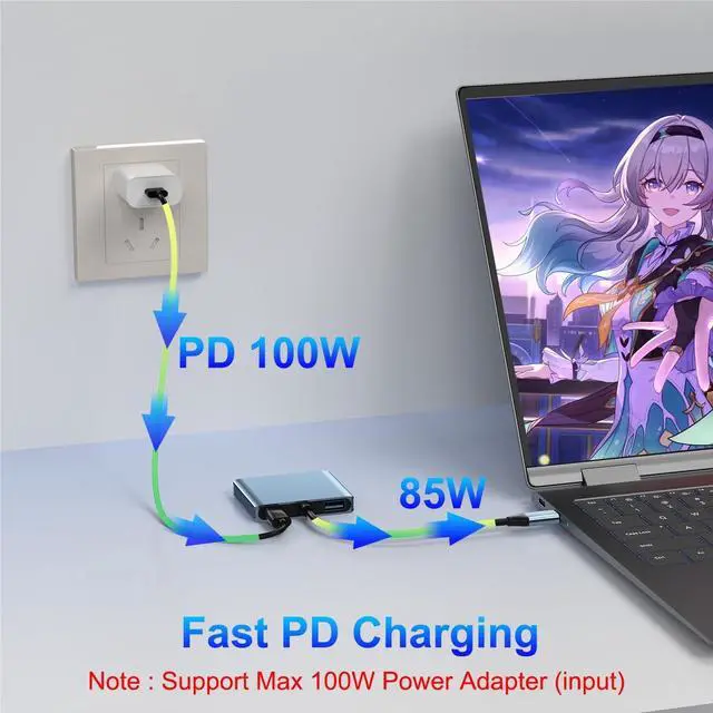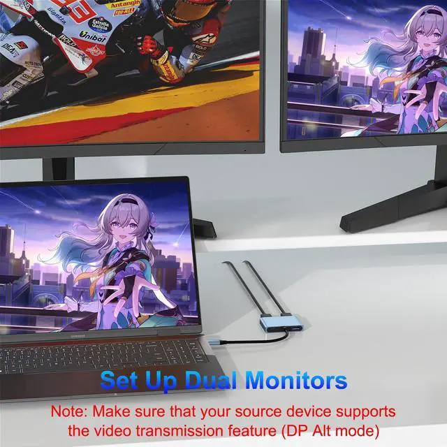 (Important: ONLY when your devices support 4K resolution, the video output will be 4K, please make sure to use an DisplayPort 2.0 cable or better. ) ^^ 4K Resolution and TV OutputThe dual monitor splitter adapter Extended Display utilizes MST technology, maximizing your existing video card's potential to deliver stunning Ultra HD 4K resolution, four times sharper than 1080p, it's ideal for modern AV equipment. Equipped with dual monitor adapter terminals, you can easily extend laptop to two monitors. enjoy high-quality videos on your TV, monitor, or projector. Whether for presentations or movie nights, immerse yourself in crisp visuals (Note: If you are not sure whether the interface is compatible, please consult customer service. ) ^^ USB 3.0 +PD Fast Chargingdual monitor adapter for 2 monitors features a USB 3.0 port, boasting blazing-fast transfer speeds of up to 5Gbps. Compatible with USB memory, mouse, keyboards, SD card readers, external HDDs, game controllers and more. Additionally, dual monitor adapter provides high-speed pass-through charging up to 100W. Ideal for charging most USB C ports on laptops and tablets. High-speed charging and safe, save your charging time and enjoy more gaming fun. ^^ Compatible with Multiple DevicesDisplay Port to USB C is an ideal adapter for compatibility with all Thunderbolt 3 devices(Mac Book Pro 2020 2019, Mac Book Air2019-2020, Dell XPS13/15, Lenovo Yoga 720/910/920/930, Microsoft Surface Book 2/ Surface Go/ Surface Laptop 3, Dell Latitude 13 7000/ Latitude 13 E7370.