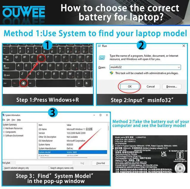 Welcome to OUWEEOUWEE are mainly sold adapter, laptop and Tablet battery, power bank, etc. Before placing your order, we highly suggest you to open the back case of your latptop and check out the exact part number of your laptop's original battery. 1.