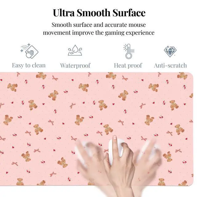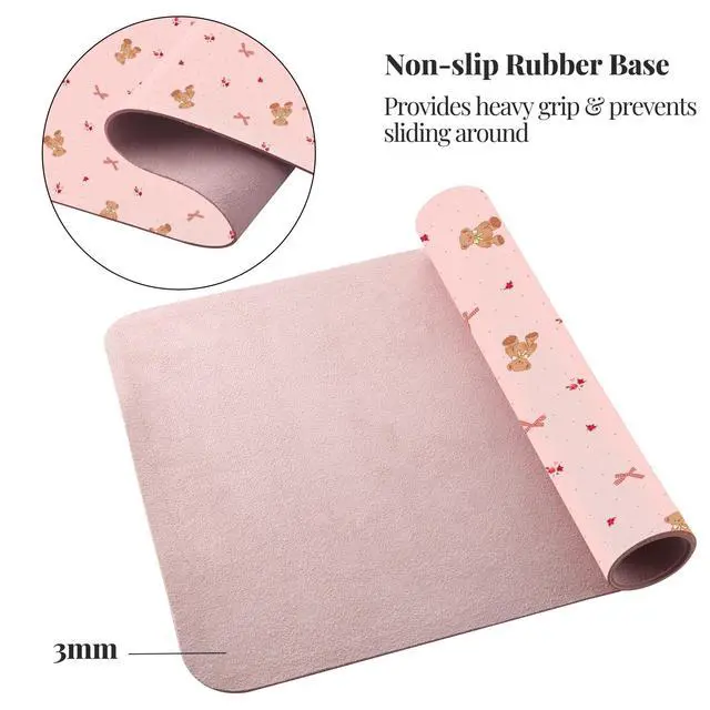 Idocolors Rose Bear Pink Desk Mat, Cute Extended Gaming Keyboard Mouse Pad, Large Office Desk Cover Mat Pad Deskmat, Non-Slip Leather Home Office Desk Mat Protector 31.5"15.7"