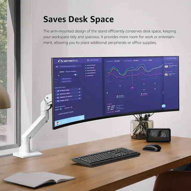 ^^ More Ergonomic Design: The Ultrawide Monitor Arm Reclaims valuable desk space by replacing bulky monitor stands; easily adjusts ultra-wide, curved monitors or curved gaming monitors across an expansive range of motion for comfortable, personalized views sitting or standing. Release strain on the neck & shoulders. ^^ Before buying, check the weight of your monitor (not including the base). The 24" to 43 " screen is suitable for purchasing 11 lbs to 33lbs monitor arm (S515). The 34" to 49 " screen is suitable for purchasing 22 lbs to 44lbs monitor arm (S1020). The heavy duty monitor arm S1020 also fits the newest Samsung 57-inch monitor.