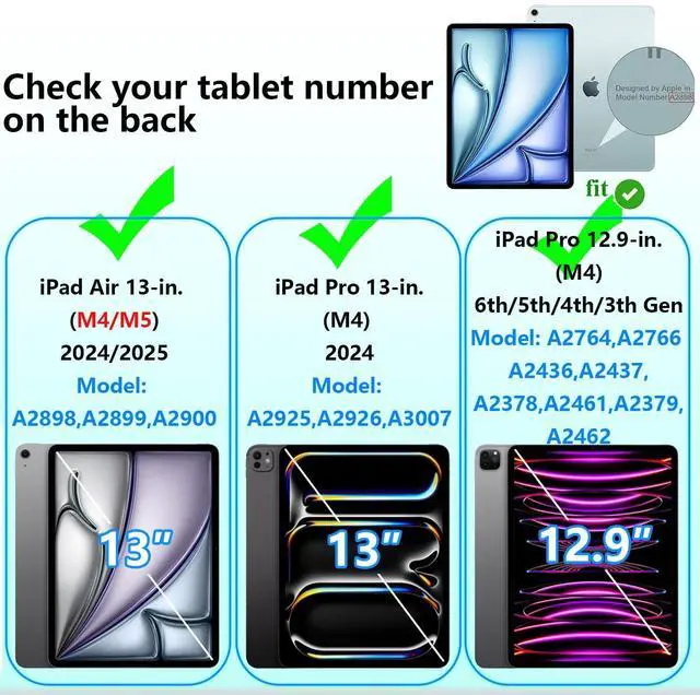 Fit: Case for iPad Air 13 inch M2/M3 (2024/2025), for iPad Pro 13 inch 7th Gen M4 (2024), for iPad Pro 12.9 inch (2022/2021/2020) ^^