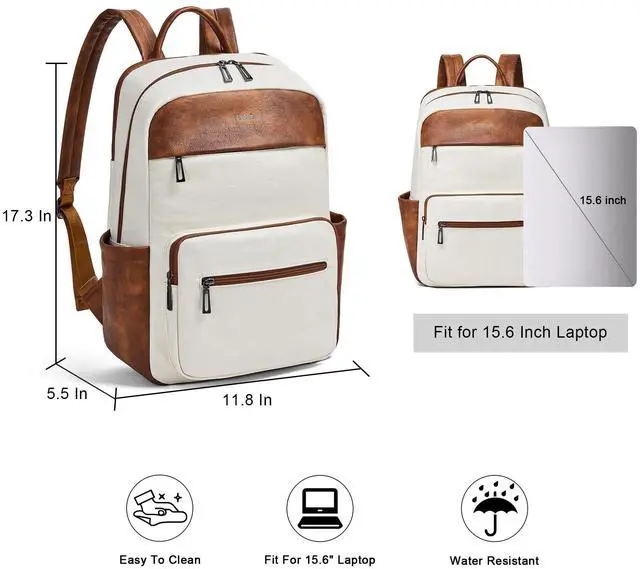 Capacity Travel Backpack: Large backpack Offers 12 functional pockets including a main compartment (with foam divider), inner zipper pocket, 2 slip pockets, Separate laptop sleeve(fits 15.6 inch laptop), 2 side pockets, 3 front zipper pockets, and a anti theft back pocket. Easily organizes A4 folders, documents, clothes, and daily essentials. ^^ Vegan Leather Backpack for