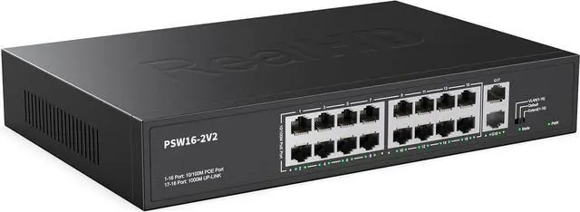 Poe switch with 802.3 af/at compliant16-Ports 10/100 switch with 4 PoE ports and 2 Uplink Ethernet, providing up to 30W per port and total PoE power budget of 300W. The 2 uplink ports can be connected to different networks or devices, such as routers, NVRs ^^ Unmanaged Plug and PlayEasy setup with no software installation or configuration needed, support power detection function, automatically detect devices, will not burned non-stantard PoE device or standard PoE switch ^^ Sturdy and QuietEngineered for compact convenience, it durable metal case that is easily positioned on your desktop or a wall.