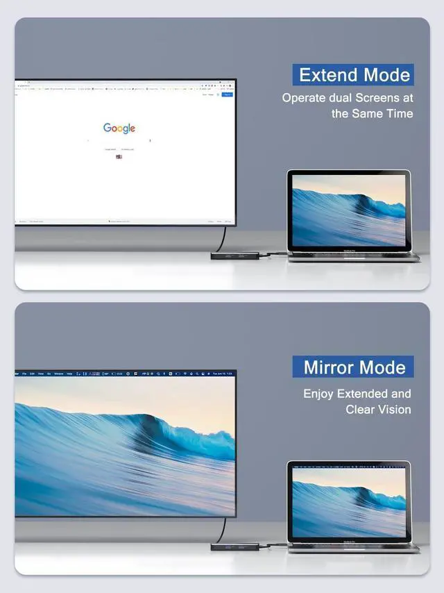 Two-mode can be chosen: mirror or extend, which enable you to work and entertain simultaneously. The MacBook hub gives you vivid crystal-clear video sync during business / video conferences, presentations and games ^^ Fast Data Transfer, More External Devices Connection Use 3 USB 3.0 data ports to transfer music, movies, large files at speeds up to 5Gbps, down compatible with USB A 2.0 and below. Simply connecting up to 3 USB A devices to your PC or laptop, such as external hard drive, printer, mouse, keyboard, etc., faster and more convenient operation can be provided ^^ Our