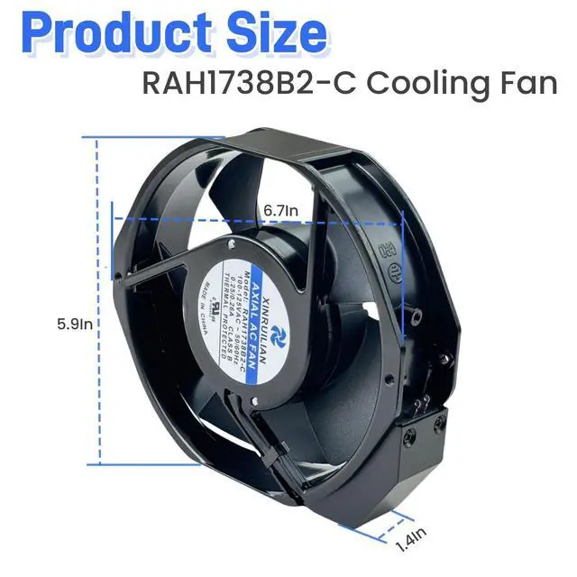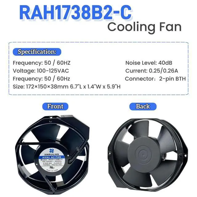 for XINRUILIAN RAH1738B2-C cooling Fan172mm Cabinet Cooling Fan2-pin BTH Connector Rack Cooling FanModel: RAH1738B2-CSize: 17215038mm 6.7"L x 1.4"W x 5.9"H, Voltage: 100-125AVC, Power: 2W, Frequency: 50 / 60HZNoise Level: 40dB