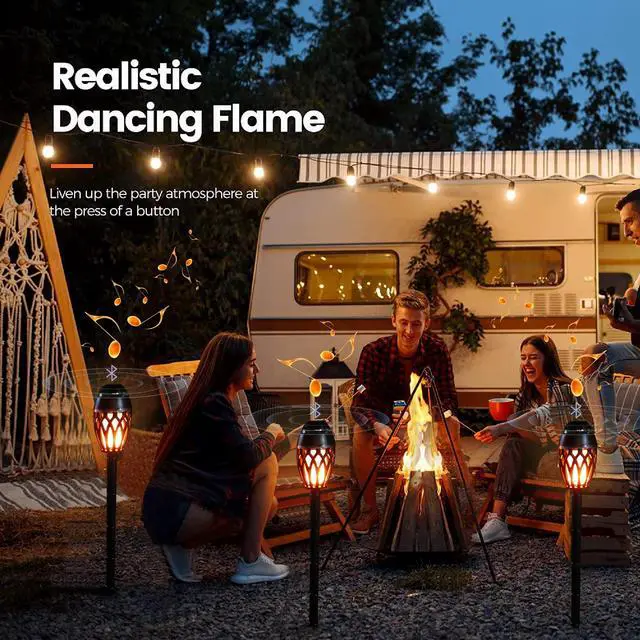^^ Waterproof Wireless Stereo SpeakerBuilt-in 5W audio driver provides full HD stereo sound, and the rear subwoofer provides enhanced bass, enjoy clear audio and impressive volume. The tiki torch speakers features an IPX5 water-resistant rating, making them waterproof, dustproof, snowproof, and safe for outdoor or indoors use. ^^ Unique GiftThe Outdoor bluetooth flame speaker add romance and elegance to your space. Suit for Valentine's Day, Father's Day, Mother's Day, Easter Day, Thanksgiving Day, Halloween, Birthday, Anniversary, Wedding, and it is a cool tech gifts for yourself, couple, parents, sister, brother, lovers, family, friends, classmates, colleagues.