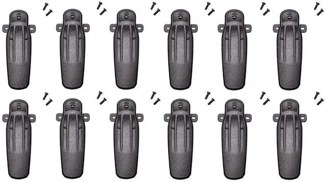 Compatible with Kenwood NX200, NX300, NX200G, NX300G, NX410, NX32003400, NX52005400, TK2180, TK3180, TK5210, TK5220, TK-480, TK-2200, TK-2400/3400 variants, TK-3200, and TK-360G, ensuring wide replacement support ^^ Comes with 12 KBH-11 spring-loaded belt clips and 24 screws, keeping multiple radios secure and ready to wear ^^ Made of high-quality ABS material, these clips firmly attach to the back of your radio, offering robust protection against drops whether carried on your belt, waist, or in a pocket ^^ Quickly replace broken or worn clips with a simple screw-on design.