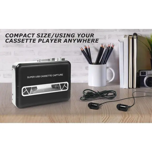 ^^ Complete Kit: The kit includes earphones, USB cable, and converter software, making conversion quick and easy. The cassette player is portable and can be placed in almost any bag, allowing you to play and transfer anywhere.