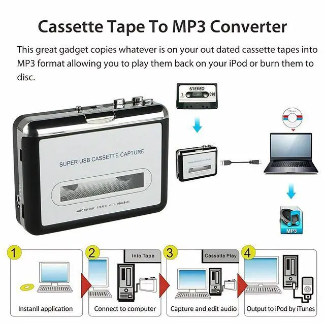 CAST YOUR OLD TAPES TO MP3: Transform your old mix tapes and cassettes into digital MP3 files for easy playback on any MP3 player or for burning onto CDs, allowing you to preserve and enjoy your favorite music from the past. ^^