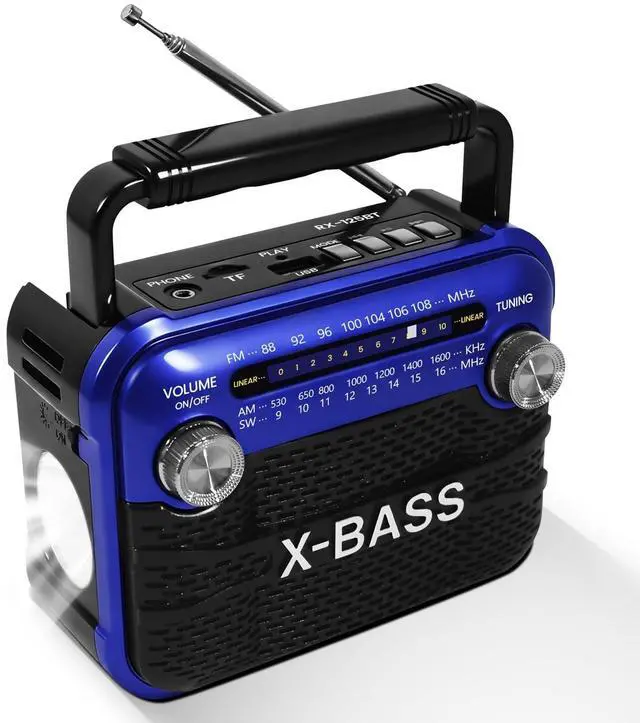 ^^ Clear sound quality and easy operationwith an output power of 1.0W and a 4 3W speaker, the X-BASS function enhances bass response, providing a more immersive listening experience. At the same time, the intuitive knob and button design, equipped with a headphone jack, allows for private listening without disturbing others. Whether you are at home, camping, or in an emergency situation, this radio is your top choice for comprehensive audio entertainment and communication. ^^ Portable Design & Emergency Lighting This compact radio is small in size and light in weight, easily fitting into your bag.