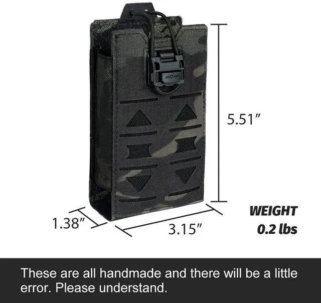 IMPORTED RAW MATERIAL: Tactical Radio Pouch is constructed of 500D cordura fabric ( authentic Multicam/Multicam black fabrics), with the property of durability, water resistant and tear-resistant.