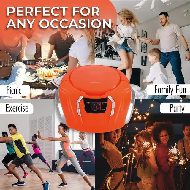 CD BOOMBOX. Proscan Elite boom box with CD player built in is one of the best portable CD players for home use. The sound quality is unparalleled among other portable CD boomboxes at this price point! Use batteries or the included AC/DC power cord. ^^