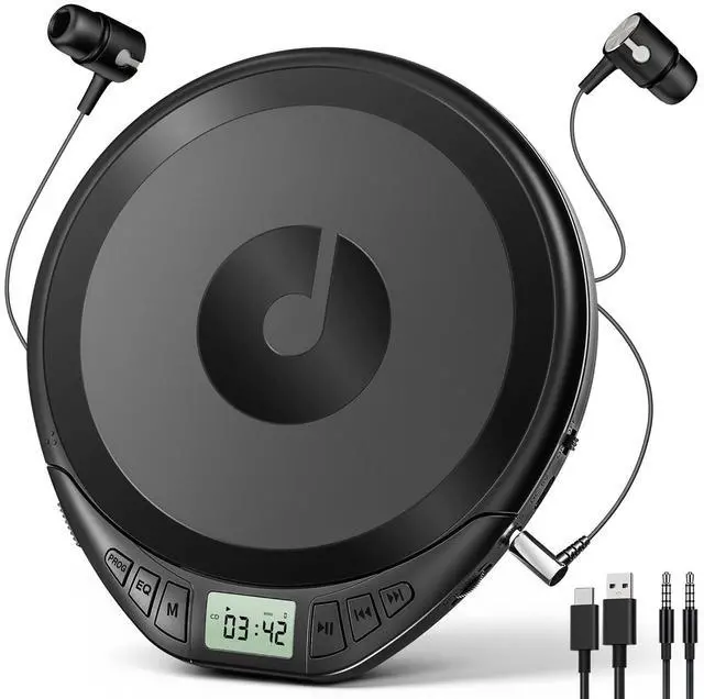 Sleek Portable CD Player: Compact CD player features a timeless black finish with a recognizable musical note logo for unique visual effects. Designed for ultimate portability, slim, lightweight bring you a perfect music experience when walking, hiking, sporting, staying at home and Traveling in car. ^^ Premium