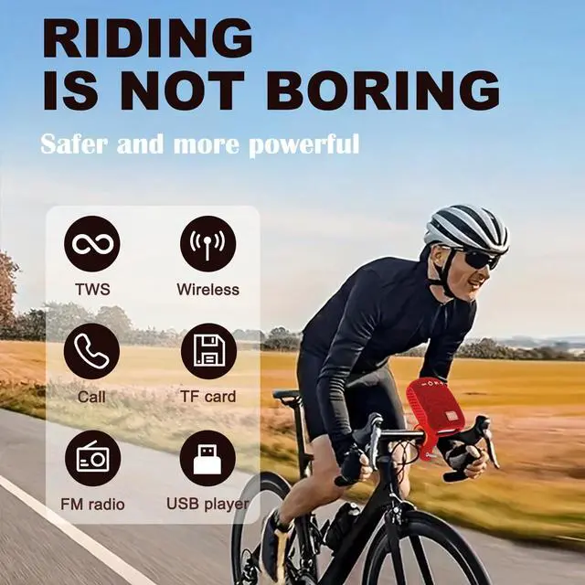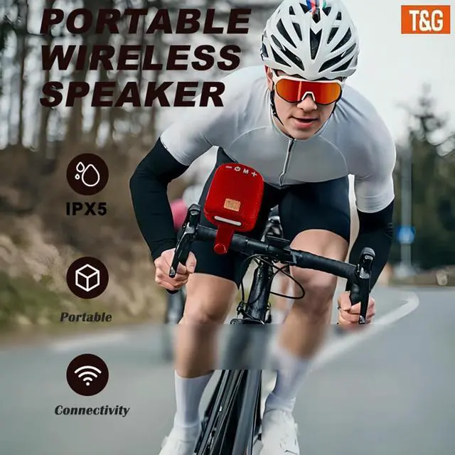This portable Bluetooth bike speaker delivers loud, clear sound with enhanced bass, a rugged shockproof body, and reliable IPX5 waterproof protection for riding, camping, hiking, or shower use. The integrated mount keeps it stable on bikes and scooters, while Bluetooth 5.0 and AUX offer wide compatibility. With a built-in mic and up to 4 hours of playtime, its the perfect outdoor wireless speaker for hands-free calls and music anywhere.