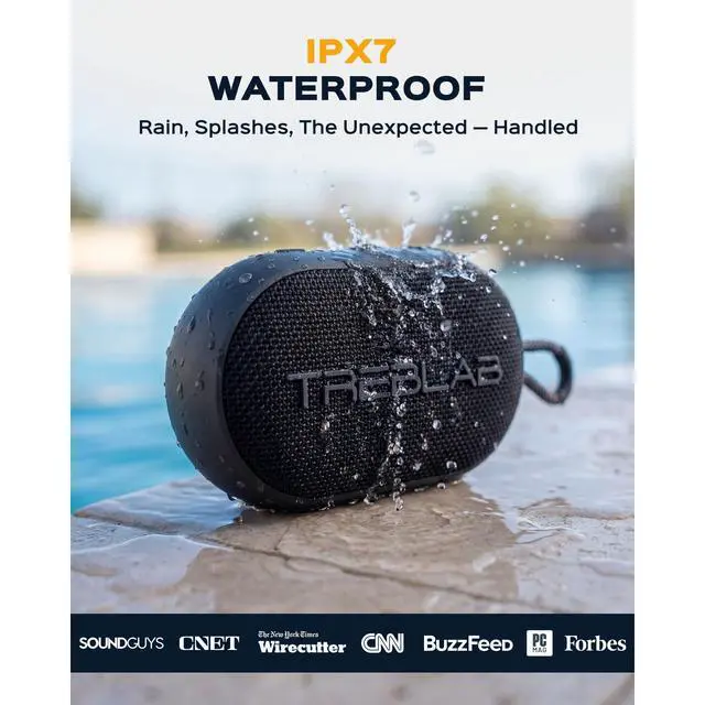 ^^ Fully Waterproof: this portable waterproof speaker is great for the pool, beach, or shower. The built-in microphone ensures clear hands-free calls. Portable Waterproof Speaker with Built-in Microphone.