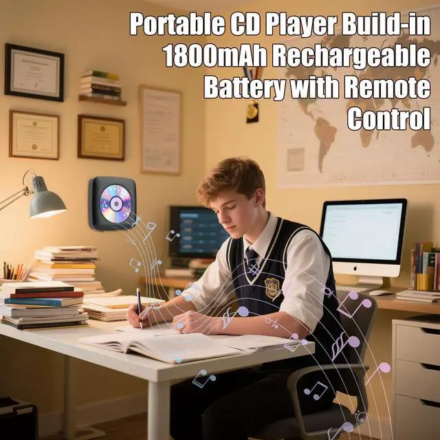 • Desktop & Wall Design: The CD player is designed for easy placement c
