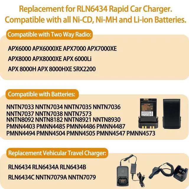 RLN6434 RLN6434A RLN6434B RLN6434C apx travel charger compatible for portable radios. Replacement for NNTN7624 NNTN7624B NNTN7624C apx car charger. ^^ Cigarette Lighter