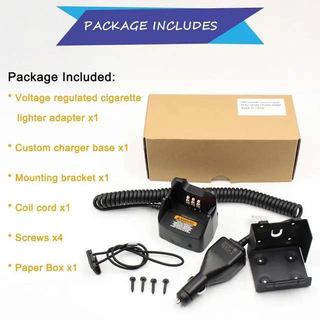 Package Included: Voltage regulated cigarette lighter adapter x1Custom charger base x1Mounting bracket x1Coil cord x1Screws x4Replacement