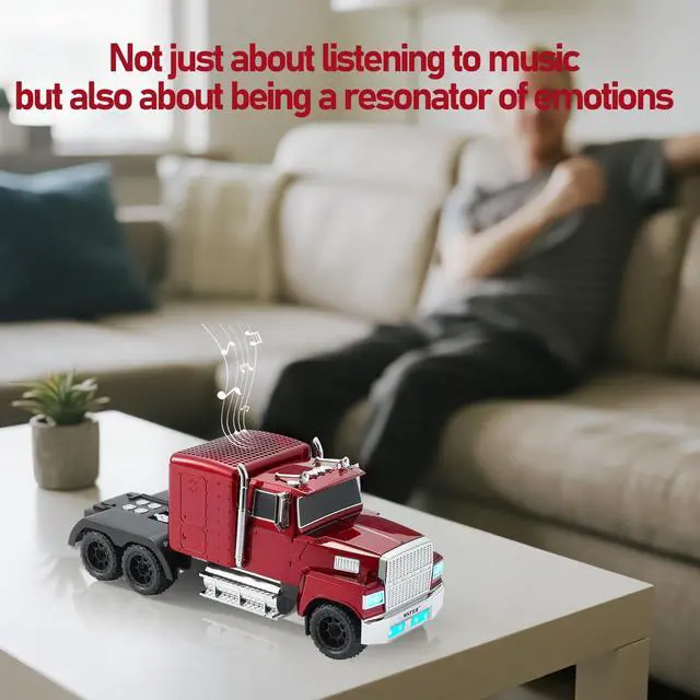 ^^ Multi-source playback supports Bluetooth, USB flash drive, TF card, AUX input and FM mode. Built-in microphone is perfect for desk, home office or daily conversation. ^^ Portable & Gift-Ready Compact yet eye-catching, this Bluetooth car speaker doubles as a collectible truck model. With a rechargeable battery for hours of playback, it makes a perfect surprise for truck fans, music lovers, and anyone who enjoys style with sound.