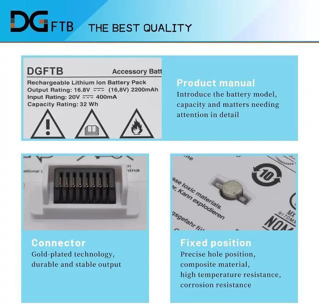 Instructions for use: Each products has undergone rigorous testing to ensure the correct voltage, circuit protection, stable current, low self-discharge and CE / FCC / RoHS Certified for safety. About 500 recharge cycles over the life. Do not disassemble, crush or puncture. Do not dispose of in fire or water. If you remove battery for a long time, charge more than 80% at least one time within one months. When using the battery, care should be taken to prevent exposure and moisture.
