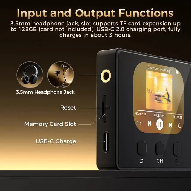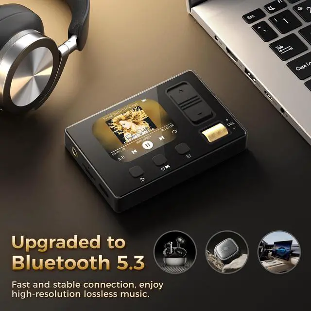 32GB Large Capacity & Fast File Transfer The Diofox MP3 player comes with built-in 32GB storage, which can store thousands of songs, audiobooks, and study files. Supported by USB 2.0, it ensures fast and stable data transfer, making it easy to manage your media library anytime and anywhere. ^^ Advanced Bluetooth 5.3 for Stable Connection Equipped with the latest Bluetooth 5.3 technology, this portable music player provides faster transmission, stronger anti-interference, and more stable connection. It supports multiple lossless audio formats including MP3, FLAC, APE, WMA, WAV and AAC, delivering an excellent listening experience with lower power consumption.