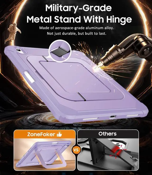 ZoneFoker for iPad A16 Case, iPad 11th/10th Generation 2025/2022 (11 inch/10.9 inch) with [Multi-Angle Metal Stand] / Pencil Holder, Slim Lightweight Hard Cover for i Pad 11/10 th (Purple)