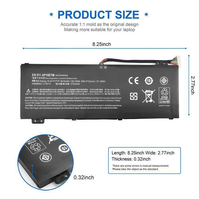 ^^ SECURITY & RELIABILITY: Our AP18E7M AP18E8M Batteries for Acer are assembled from top quality material and circuit boards to ensure fast charges and low power consumption, 100% New from Manufacturer, Overcharge and Overdischarge Circuit Protection, Over-temperature and Short-circuit Protection, up to 500 recharge cycles over the life of the battery, meet OEM standard. You can buy it with confidence.