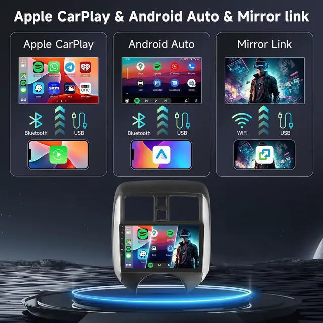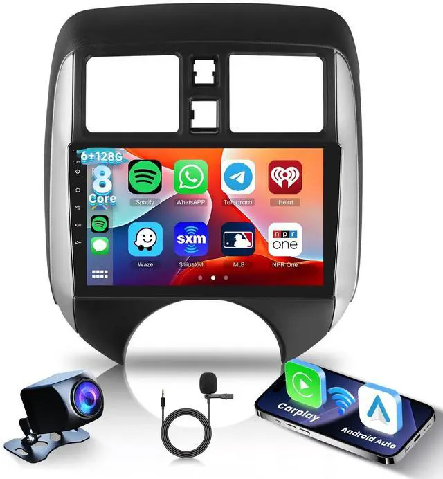 Processor: The Android Head Unit fit for Nissan Versa Note 2014-2018 experience lightning-fast processing with our car stereo's 8-core processor. Coupled with 6G of running memory and 128G of storage, this powerhouse ensures that every function, from GPS navigation to multimedia playback, runs with exceptional speed and efficiency. ^^ Connectivity with Wireless Carplay, Android Auto and