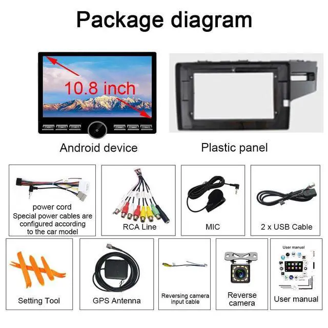 Android 15 Car Stereo RadioAndroid system,10.8 inch 2.5D 1080P HD touch screen, 4G RAM+64G ROM eight Core CPU, offline/online GPS navigation, Wifi connection, RDS/FM radio, two USB, 36 EQ adjustable, support carplay Android auto, steering wheel control.