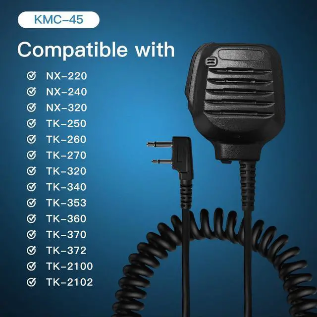 Compatible Information: Replacement for KMC-45 KMC-45D KMC-21 Standard mobile microphone, Compatible for NX-220 NX-240 NX-320 TK-250 TK-260 TK-270 TK-320 TK-340 TK-353 TK-360 TK-370 TK-372 TK-2100 TK-2102 TK-3100 TK-3102 TK-2170 TK-3170 TK-2173 TK-3173 TK-2200 TK-3200 TK-2202 TK-3202 TK-2300 TK-3300 TK-2302 TK-3302 TK-2312 TK-3312 TK-2360 TK-3360 TK-2400 TK-3400 TK-2402 TK-3402 and more