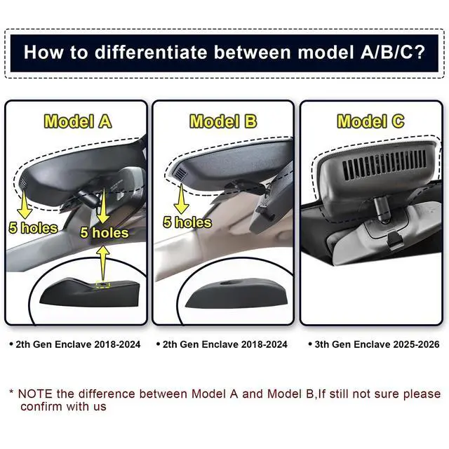Power Adapter(asin: B0CXXXV4YG). ^^ Model A & Model BThe model A and model B match the same vehicle year and must be distinguished by the vehicle sensor cover. Seriously compare THE SECOND PICTURE and THE Third PICTURE. ^^ Custom fit for Buick EnclaveMangoal 4k dash cam can fit perfectly behind the rear view mirror like original. No messy wiring exposed, no complicated rewire at all. Perfectly intergrated with Buick Enclave 2018-2024 vehicle styles (Model A), Such as Base Essence Premium Avenir Preferred ^^ Built-in WiFi, free AppThe built-in WiFi owns higher-definition and faster download speed, and the free user-friendly App makes it convenient to view realtime videos on your phone, download or transfer important footage to PC. You can also share videos on social media with friends or families whenever you want. ^^ What you getMangoal OEM Look 4K Dashcam x1, 64G MircoSD Card x1, User Manual x1, OBD Power Adapter x1, Auto-Dimming Rearview Mirror Plug Power Adapter x1, Crowbar x1, Strap x2, worry-free 12-month warranty, and friendly customer service. It doesn't support to add a rear camera separately if you've already had the single front camera! Because the PCB boards are different.