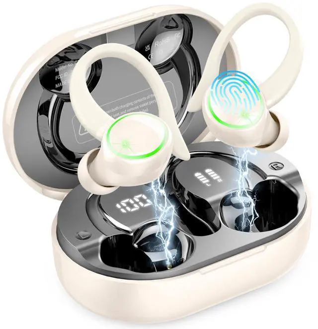 Smart Touch Control: The wireless ear buds, equipped with a hall effect sensor, automatically power on and reconnect to the last paired device simply by opening the case after initial pairing. These sport headphones are compatible with a wide range of devices, including smartphones, TVs, computers, and laptops. Bluetooth earphones also feature intuitive touch controls on the earbuds for play/pause, volume adjustments, call management, and voice assistant activation.