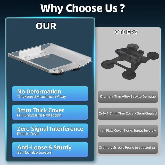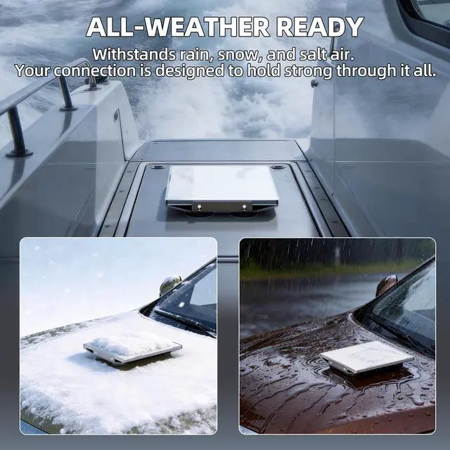 Magnetic Mount: Designed specificially for Starlink Mini, our Starlink Mini mount can not only help protect your Starlink Mini in all weathers, but also hold your Starlink Mini dish stably in any shaking road ^^ 360 Protection & Anti-Slip DesignThe four-sided enclosure keeps your Starlink Mini secure and stable while driving. Included rubber gaskets add extra cushioning, prevent screw contact, and increase grip to minimize movement and vibration on the road ^^ All-in-One Portable Mounting SolutionCrafted from premium, weather-resistant materials, this kit is built to last. Perfect for RVs, trucks, SUVs, trailers, and any metal surfacewhether parked or on the move. Get fast, stable internet access wherever your adventures take you