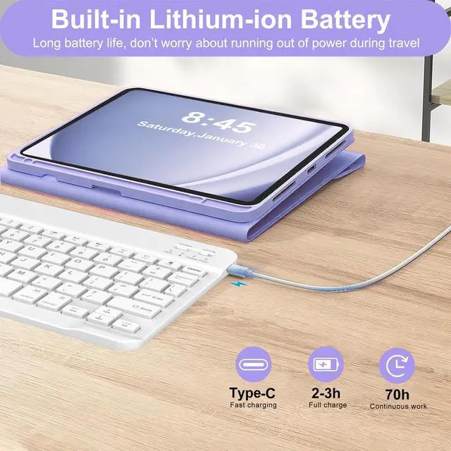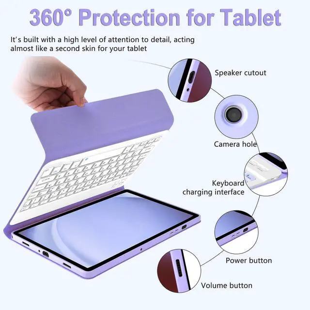 Model (SM-X210/X216/X218) NOTE: This keyboard case is not suitable for S9 11 inches, S9 FE 10.9 inch. ^^ MULTI-VIEW ANGLES CASEThe Samsung A9 plus tablet case keyboard has multiple viewing angles, you can choose your optimal angle to use your tab. Type, sketch, view and readif you need to get something done on your tablet, choose from four versatile use modes to get it done. ^^ MAGNETIC DETACHABLE WIRELESS KEYBOARD - The keyboard layout is specifically customized for 11-inch tablet A9 Plus. The detachable magnetic wireless Bluetooth keyboard can turn your tablet into a high-performance and easy-to-use laptop or your favorite drawing board. The buttons adopt ergonomic and aesthetic design, give your hands a comfortable and clean touch. Scissors mechanical keyboard feels quiet and smooth. ^^ RECHARGEABLE KEYBOARD WITH LONG BATTERY LIFEThe Samsung A9 Plus tablet case keyboard adopts the more general type-c interface, charging for 2-3 hours, and can work continuously for up to 70 hours under normal use. Galaxy tab A9+ Plus case with keyboard comes with power-saving mode, long periods of non-use will enter the hibernation state. ^^ STABLE BLUETOOTH CONNECTION & PRECISE CUTOUT CASEConvenient and fast Bluetooth connection allows you to use the galaxy tab A9+ Plus case with keyboard anywhere, anytime.