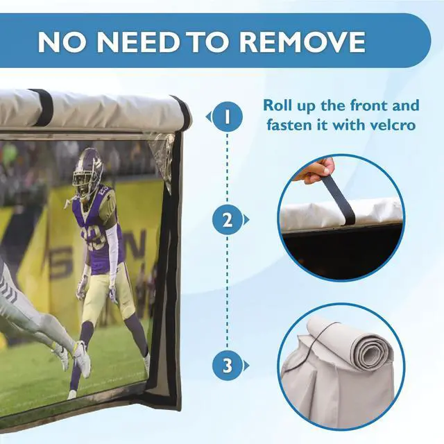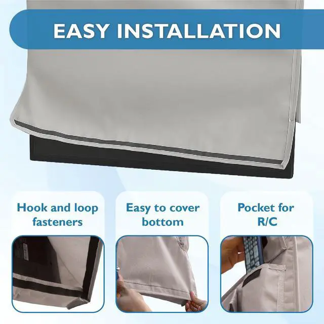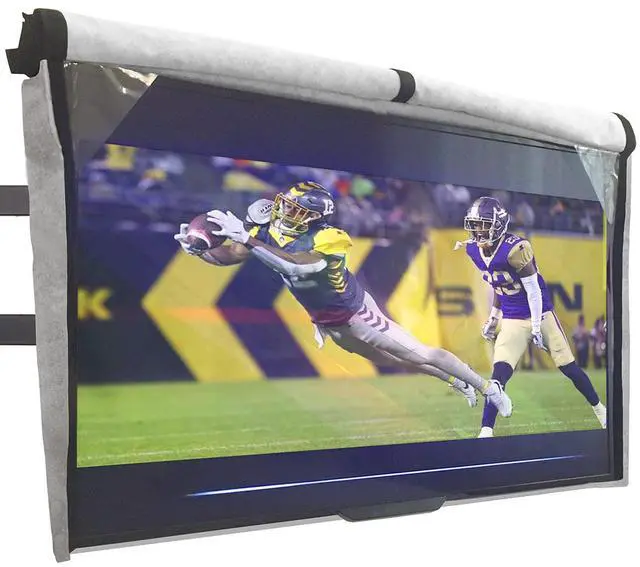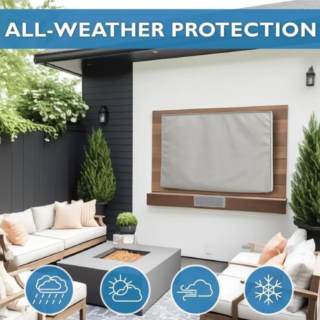 WEATHERPROOF, HIGH QUALITY MATERIAL This Outdoor TV cover is made of heavy-duty 600D Oxford material with polyester backing and soft interior. The TV cover will keep your TV safe from any weather including rain, dust, sand, snow and extend the life of your outdoor TV. ^^ WRAP-AROUND COVERAGE - Provide 360 degrees protection for your TV outside. The fasteners are hidden to prevent water intrusion and completely seal your TV. ^^ DIMENSIONS OF 60-65