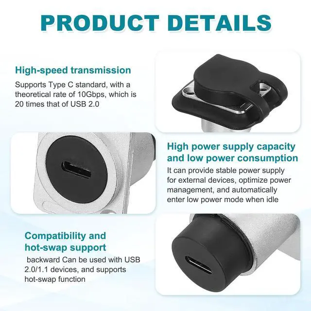 Compatibility and hot-swap support: backward Can be used with USB 2.0 / 1.1 devices, and supports hot-swap function ^^ No welding or installation tools are required. The installation can be completed by fixing with nuts, which saves space and Can be used with industrial cabinets, home walls and other scenes. ^^ The direction must be aligned when plugging and unplugging to avoid forced insertion that may cause deformation of the pins.