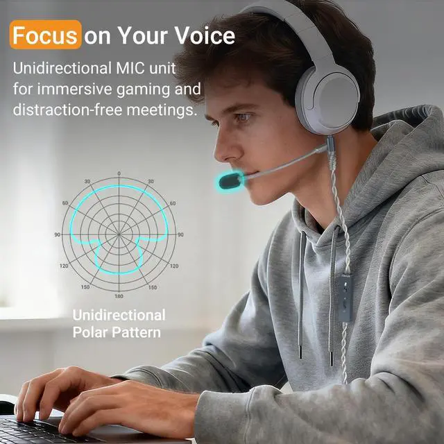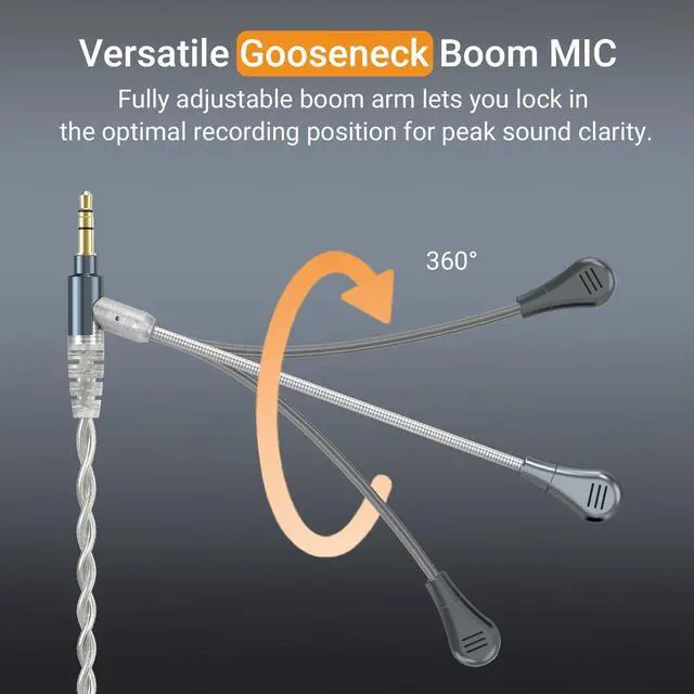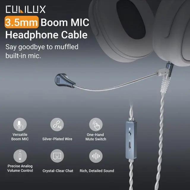 [ 3.5 mm Headphone Cord with Microphone] Transform your regular headphones into a headset for gaming, online meetings, voice chat, and calls. Compatible with most 3.5 mm headphones. ^^ [Flexible Boom Mirophone] Features a high-quality boom mic that can be freely adjusted to the best angle for clear, crisp voice pickup during games, meetings, and streaming. ^^ [Upgraded Silver-Plated Wire] Premium silver-plated OFC cable delivers cleaner audio transmission with reduced distortion and improved clarity. ^^ [Easy to Mute] The in-line control module includes a dedicated mute switch so you can instantly mute your microphone when needed.