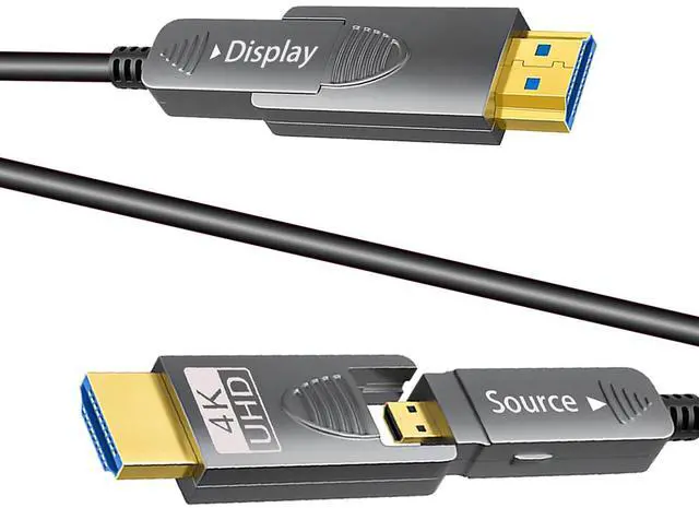 • 4.Flexible & Durability,Plug and Play. Fiber optic long hdmi cable is much thinner and lighter with only outer diameter 0.18 inch. No need external power, Plug and Play. Easy for in wall installation. 24K gold-plated connectors. Minimize interference and no black screen, ensure ima