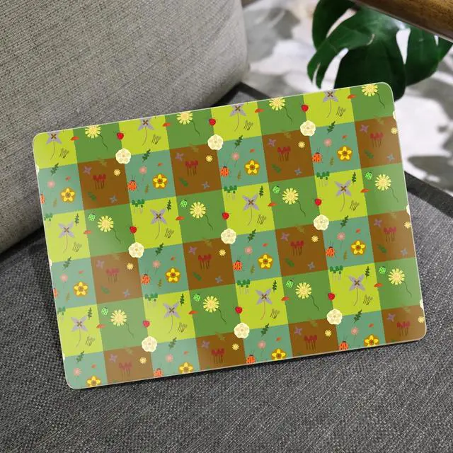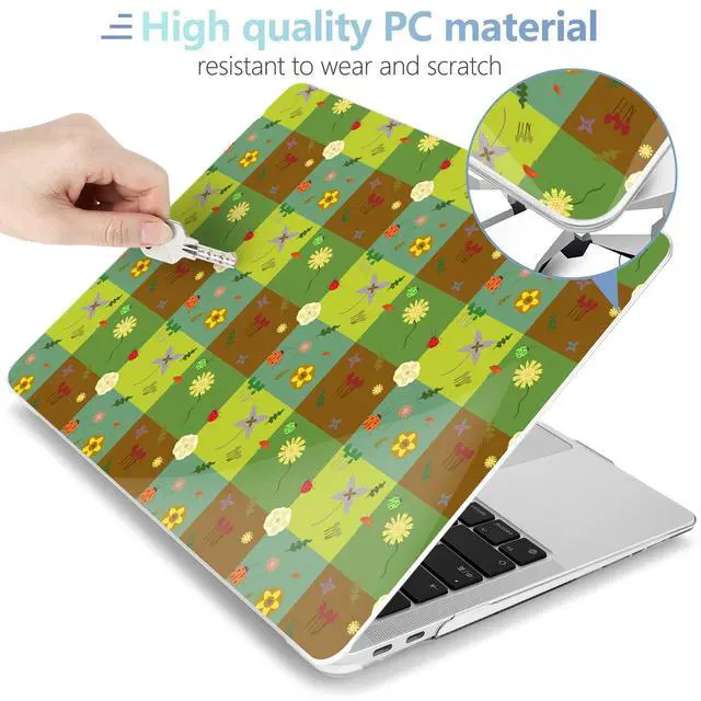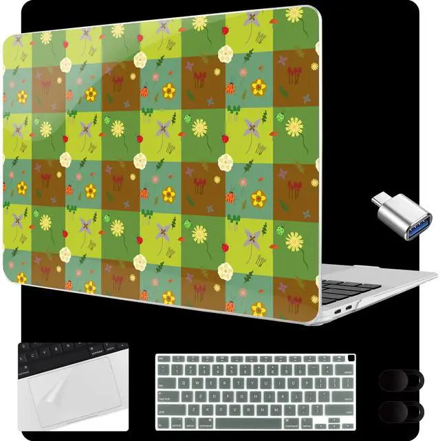 MEEgoodo for MacBook Air 13.3 inch Case 2021 2020 2019 2018 A2337 M1 A2179 A1932, Laptop Shell for MacBook Air M1 with Keyboard Webcam Cover&Trackpad Film&Type C Adapter,Green Checkered&Nature Pattern