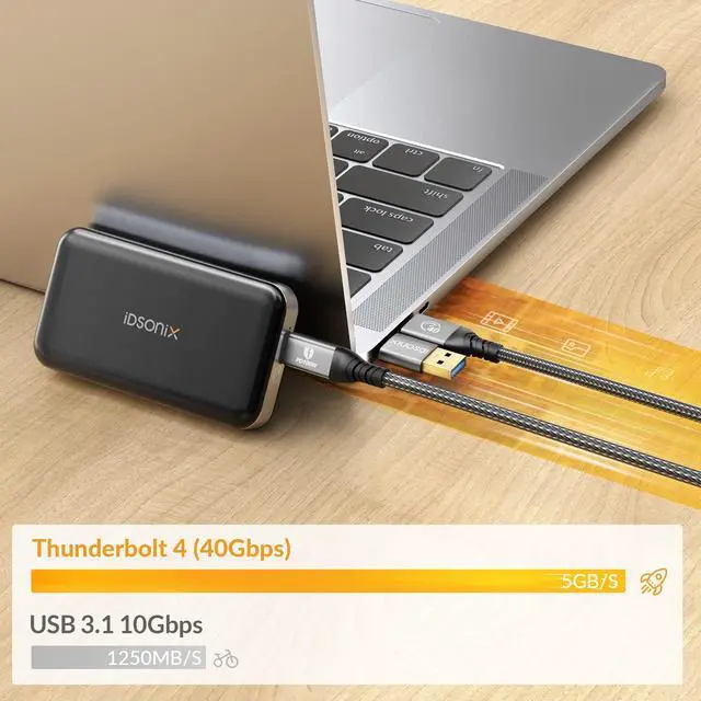 ^^ 40Gbps Flash Transmission: 10GB video or files can be transferred within 2S, providing you with an efficient working environment. And the iDsonix Thunderbolt 4 cable has a smart chip to protect your equipment and work stably.