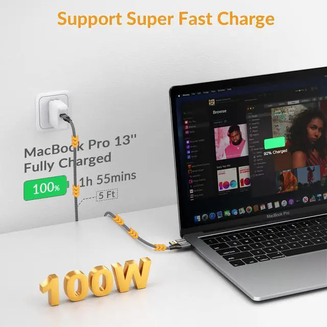 ^^ PD/QC Power Delivery: This cable supports PD 100W fast charging when your charger and device interface are both USB-C ports, with a maximum current of 20V5A. If your device is a laptop or tablet, we recommend that you use the USB-C port to charge your device. When you switch to the USB-A to C charging module, it will convert to QC fast charging, supporting 5V/3A (MAX), 9V/2A (MAX), 12V/ 1.5A (MAX).
