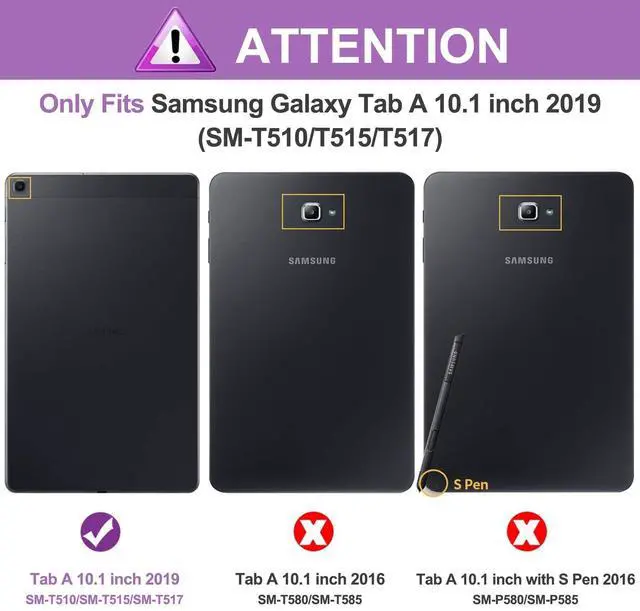 Compatibility: This only for Samsung Galaxy Tab A 10.1 '' 2019 Model SM-T510/SM-T515 /SM-T517, (NOT work for 2016 Release Galaxy Tab A 10.1 tablet, Model: SM-T580 / T585 / P580 / P585, OR ANY OTHER MODEL. )