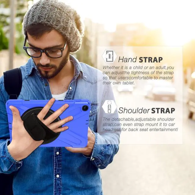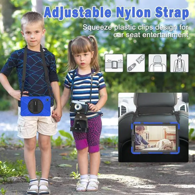 Strap: The portable shoulder strap allows you to carry your samsung galaxy tab a sm-t510 tablet securely outdoors in landscape/portable mode. You can adjust the strap to fit comfortably according to the height of adults/children, or hang your iPad anywhere in the kitchen, bedroom, car seat, etc. for different occasions.
