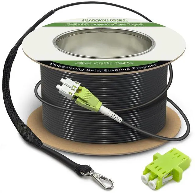 YUTIANHOME 50m/165ft OM5 Multimode Armored LC to LC Fiber Optic Patch Cord, 40Gb 100Gb Duplex Wideband MMF Jumper, 50/125, Indoor/Outdoor, LC-LC with Pulling Eye Kit Installed on one end
