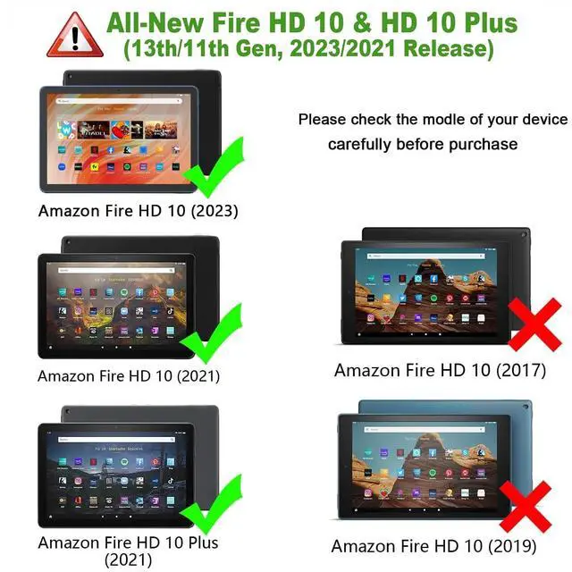 • Compatibility- Specifically Designed Case for All-New Kindle Fire HD 10 & Fire HD 10 Plus Tablet (10.1 inch Display, 13th/11th Generation, 2023/2021 Release), Please Check Your Device Model Before Purchase.