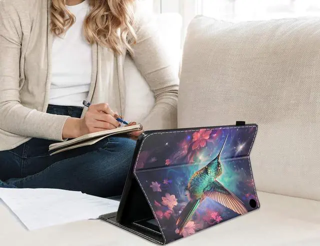 Compatibility: Specifically designed for 10.1" All-New Kindle Fire HD 10 / Fire HD 10 Plus Tablet (13th/11th Generation, 2023/2021 Release), Not compatible with any other tablet, Please Check Your Device Model Before Purchase. Why You Choose Us Made of High end PU leather, features shockproof, protective smooth outer casing and sturdy exterior with soft microfiber interior keeps your tablet screen safe. Viewing angle frees your hands from other activities and avoids any joint pain, and enables you to type or draw comfortably. Provide auto sleep/wake, Open the case to wake up and close the case to shut off, Saved power. Lightweight case design protects your tablet without adding bulk, so it is easy to carry. Designed with 4 delicate card slots inside for you to carry your necessary cards. There is a flexible pencil holder at the edge of the shell for keeping your stylus in place (Stylus is not included). Easy Access to All Buttons. Ultra compact and precisely cut to preserve full access to all buttons without taking off the case like charging, listening to music, vedios etc. This tablet case would be a perfect gift for girls boys parents and your friends.