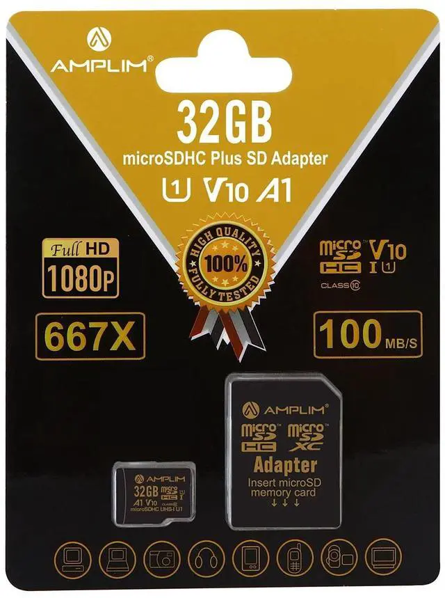 ULTRA HIGH SPEED: 100MB/S 667X Class 10 V10 A1 U1 UHS-I Full HD UHS-1 32GB microSDHC TF flash card.