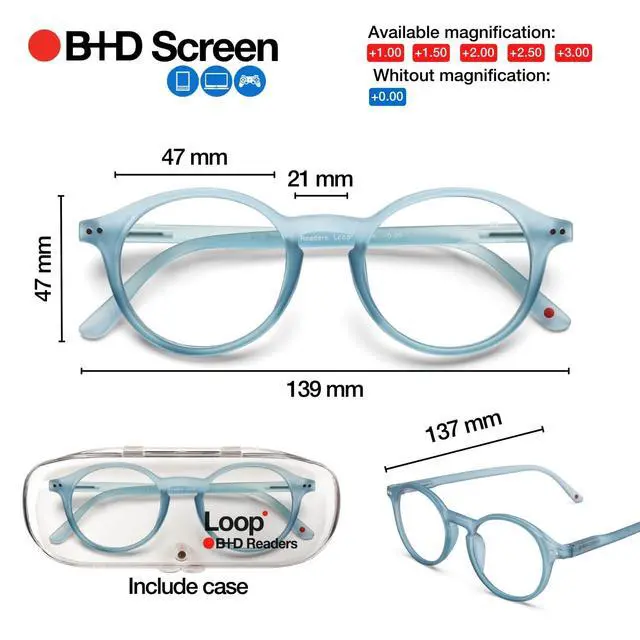 B + D Blue Light Bloking Reader Glasses Loop Readers PC soft touch Blue Color - +2.00