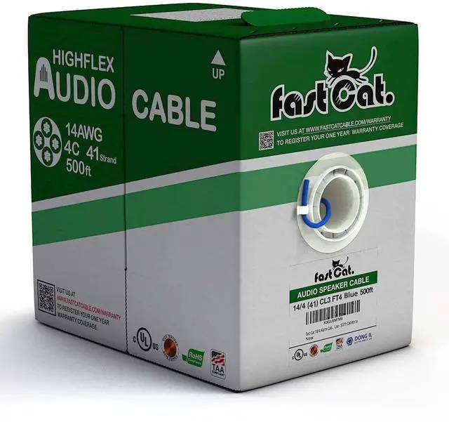 TAA-COMPLIANT & FLAMMABILITY RATED: Not only is fast Cat. 14/4 wire TAA-compliant and flammability rated, but our in wall speaker wire boasts an impressive CL3R & FT4 rating (higher than CL2 and CL3! ). Its also CMR and FT4 flammability rated so it complies with fire safety and insurance requirements that make it safe for use inside residential buildings. ^^