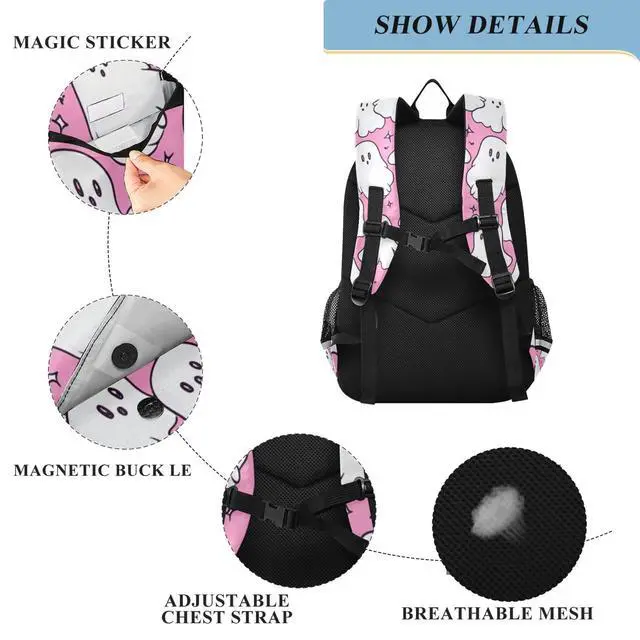 Glaphy Cute Cartoon Ghosts Halloween Backpack Lightweight Bookbag Laptop Backpack College School Bag for Teen Boys and Girls